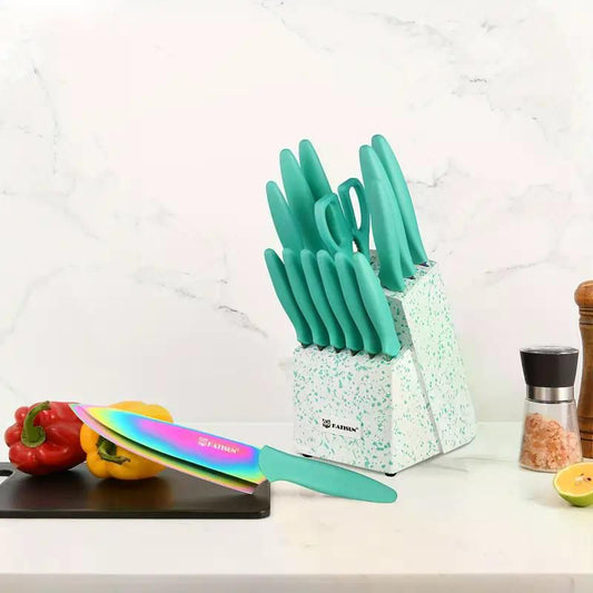 14 Pieces Fancy Rainbow Titanium Coating Kitchen Knife Set