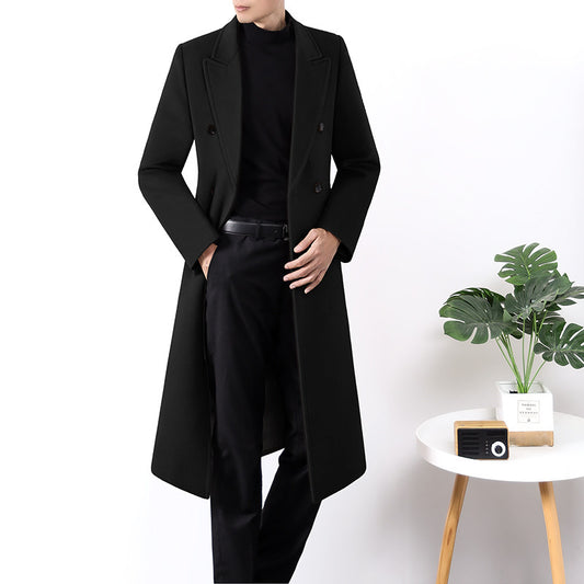 Men’s Long Double-Sided Wool Windbreaker – High-End Classic Overcoat