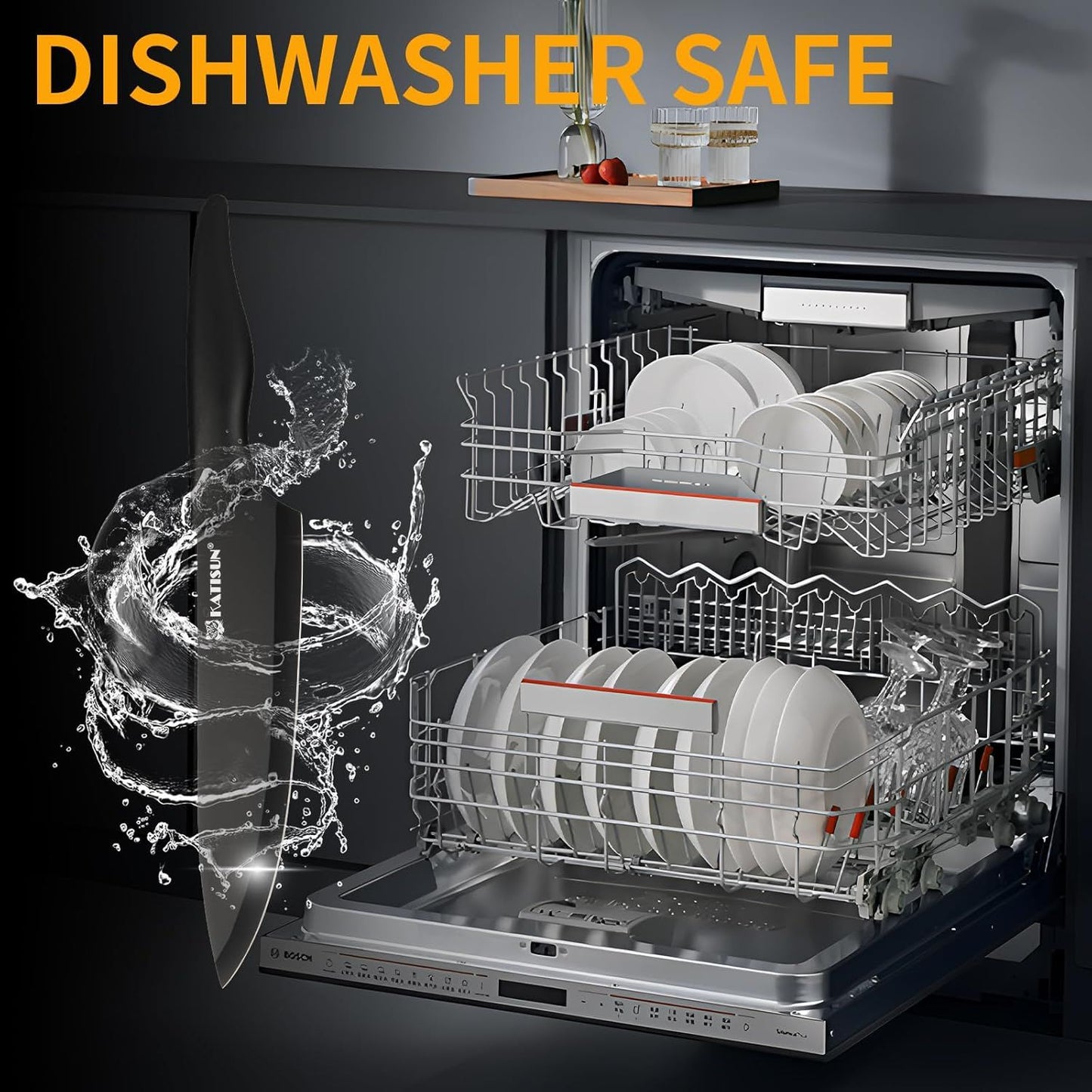 16 Pieces Kitchen Knife Block Set with Cutting Board, German Premium Quality Stainless Steel, Built-in sharpener, Dishwasher Safe, 6 Steak Knives, Anti-slip handle, Black