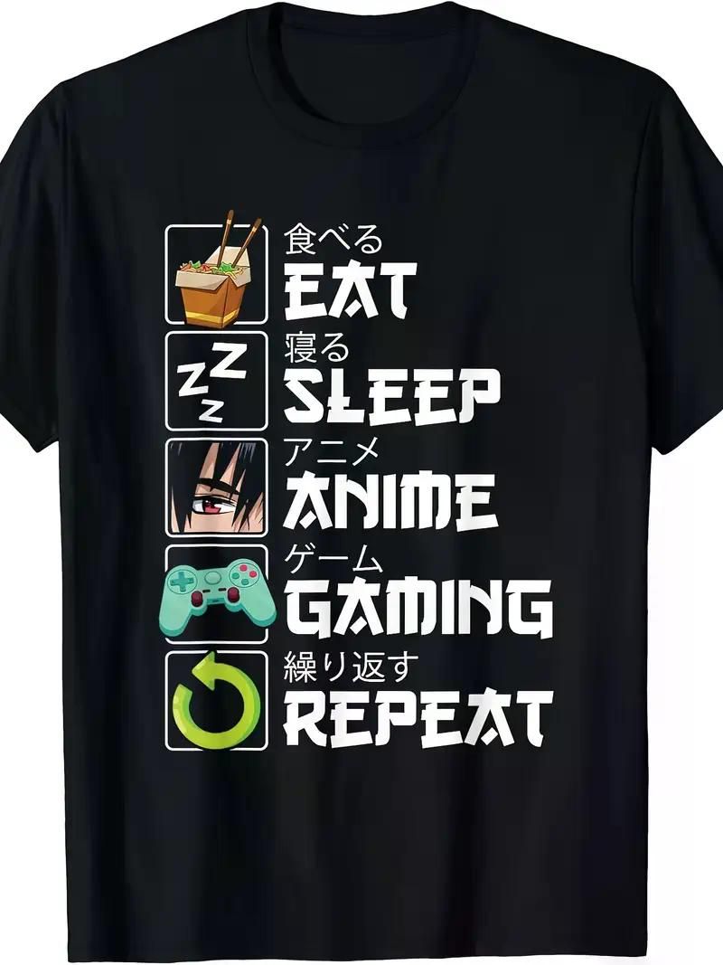 Eat Sleep Anime Gaming Repeat T-Shirt – Kawaii Otaku Anime & Manga Graphic Tee