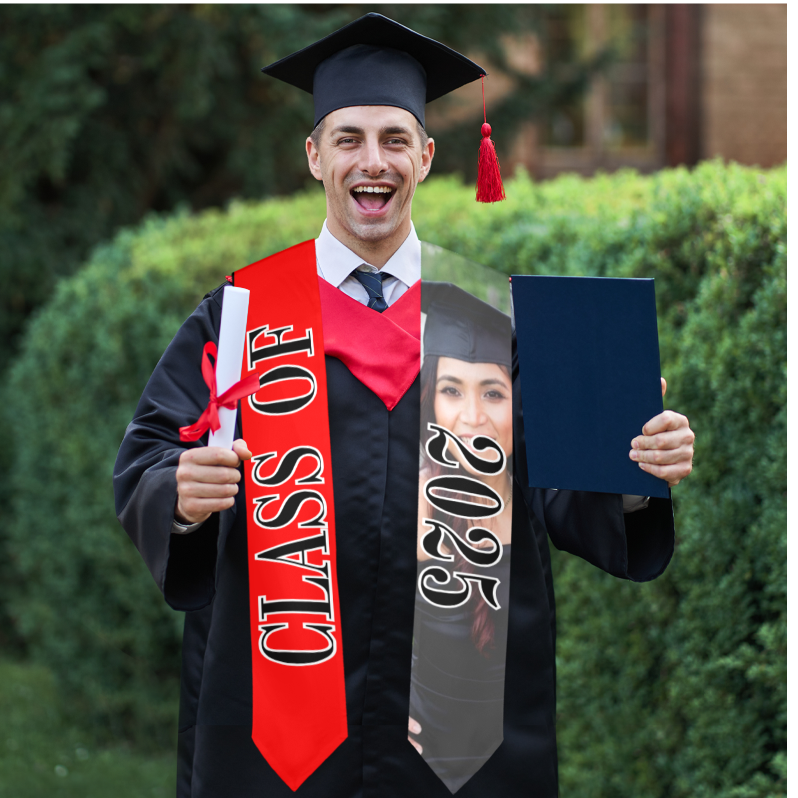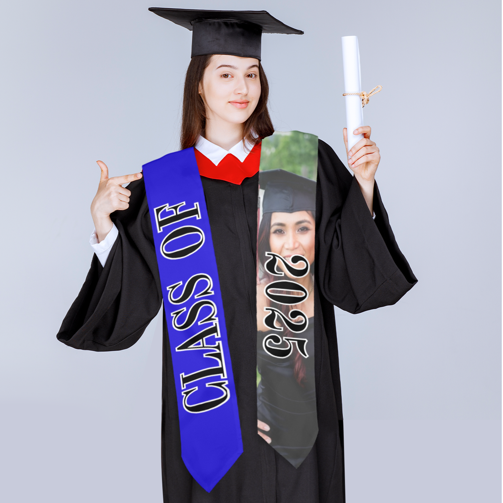Celebrate your achievement with the Class of 2025 Graduation Stole, crafted from luxurious satin for a sleek and elegant finish. Perfect for graduation ceremonies, senior photos, and keepsakes, this one-size-fits-most stole is a must-have for high school and college graduates. Order now & submit your high-resolution image for a custom look!